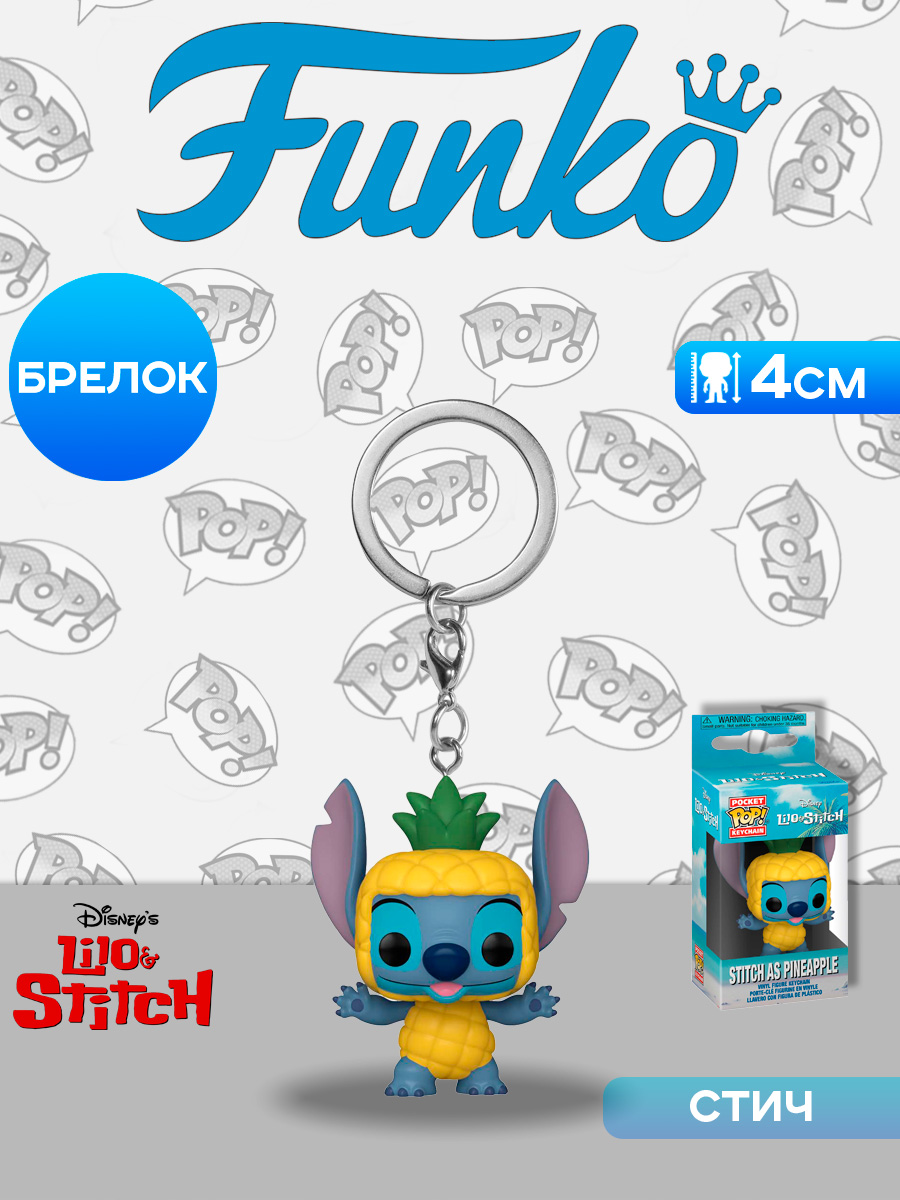 Брелок Funko Pocket POP! Disney Lilo & Stitch Stitch as Pineapple 87209 по мотивам мультфильма "Лило и стич".