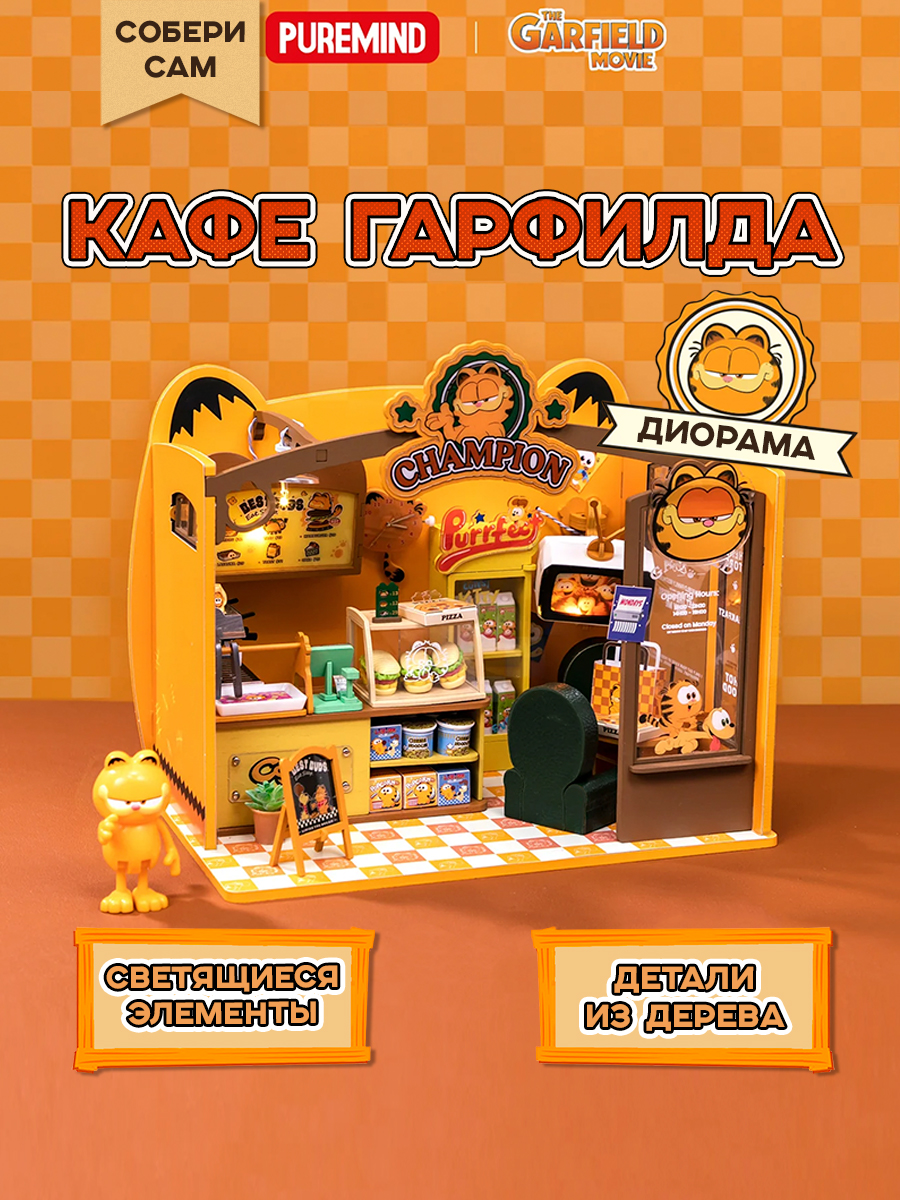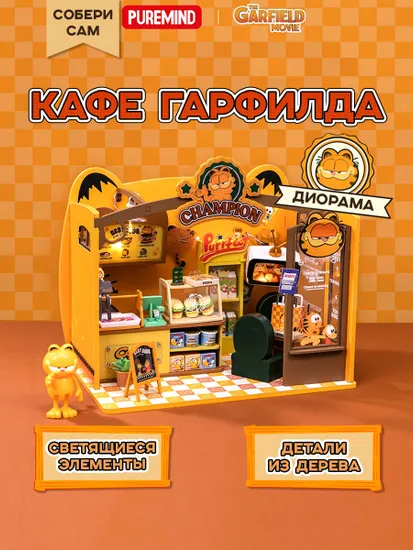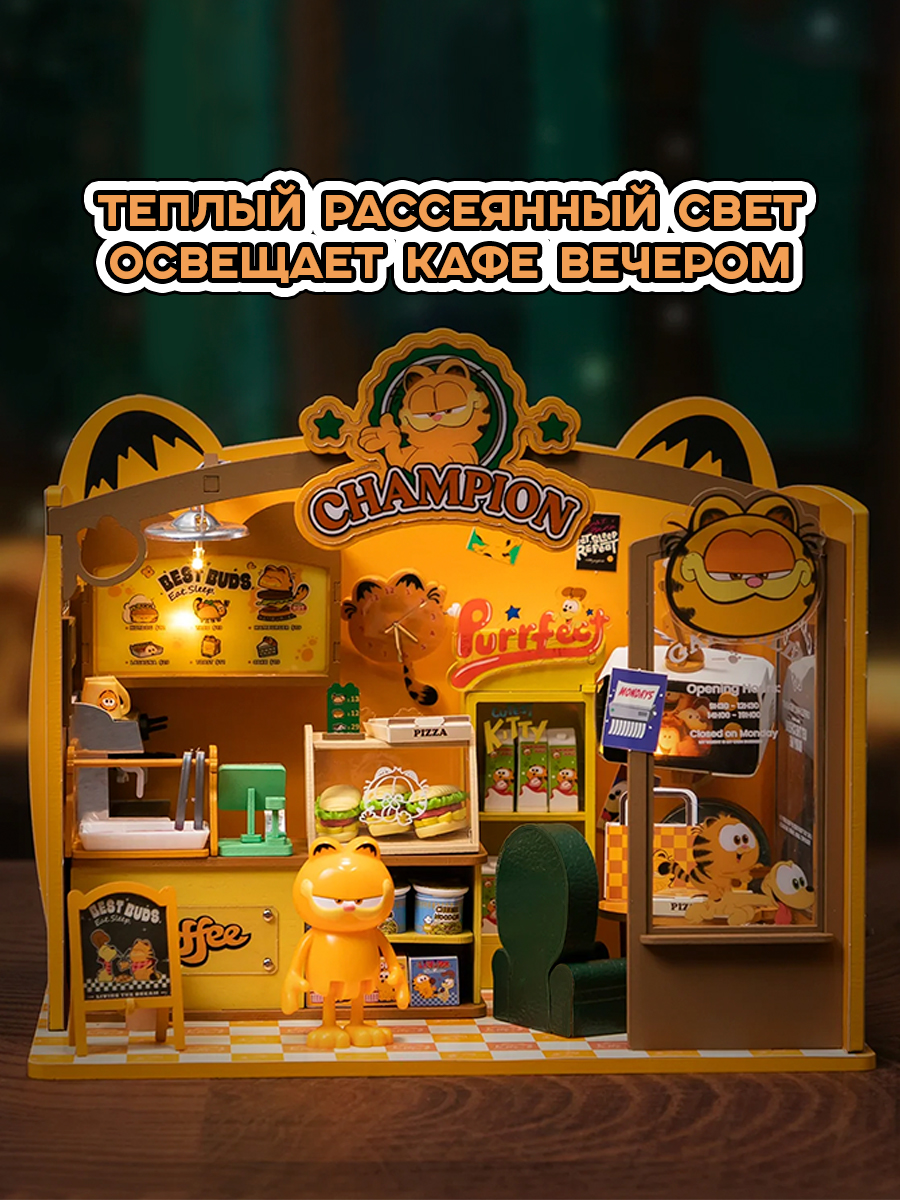 Диорама сборная с фигуркой Garfield Café 6973817323010 по мотивам комиксов "Гарфилд".