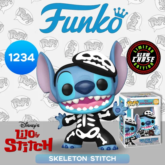 Фигурка Funko POP! Disney Lilo & Stitch Skeleton Stitch w/(GW) Chase (Exc) (1234) 66330 по мотивам мультфильма "Лило и Стич".
