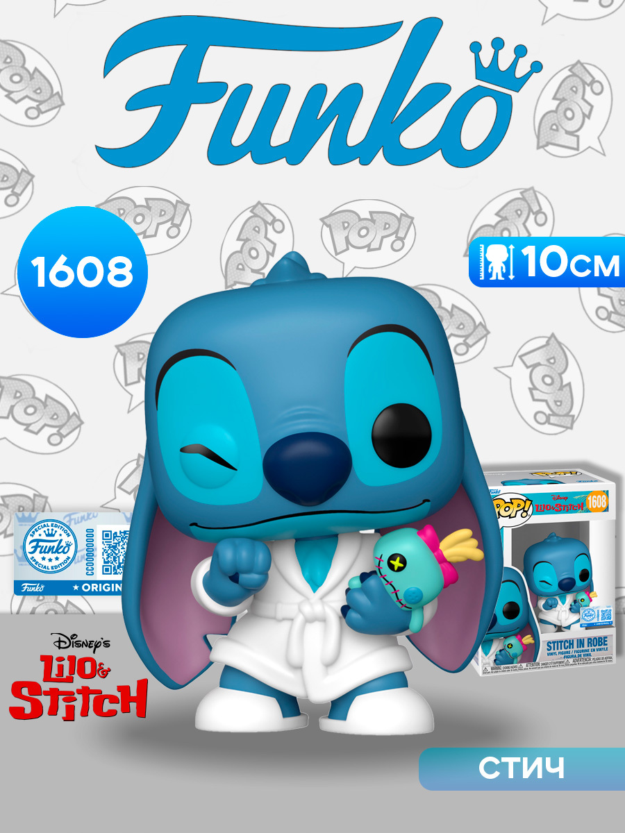 Фигурка Funko POP! Disney Lilo & Stitch Stitch in Robe (Exc) (1608) 88656 по мотивам мультфильма "Лило и Стич".