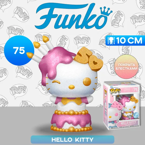 Фигурка Funko POP! Hello Kitty 50th Hello Kitty in Cake (DGLT) (Exc) (75) 76785 по мотивам франшизы "Hello Kitty".