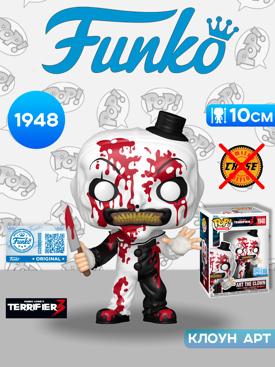 Фигурка Funko POP! Movies Terrifier Art the Clown (BD) (Exc) (1948) 91690 по мотивам фильма "Ужасающий".