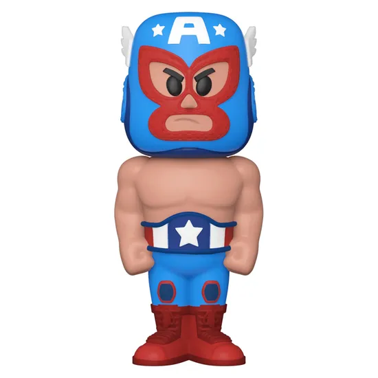 Фигурка Funko Vinyl SODA Luchadores Cap America w/(MT) Chase 54509 выполнена в виде борца-лучадора в костюме Капитана Америка.