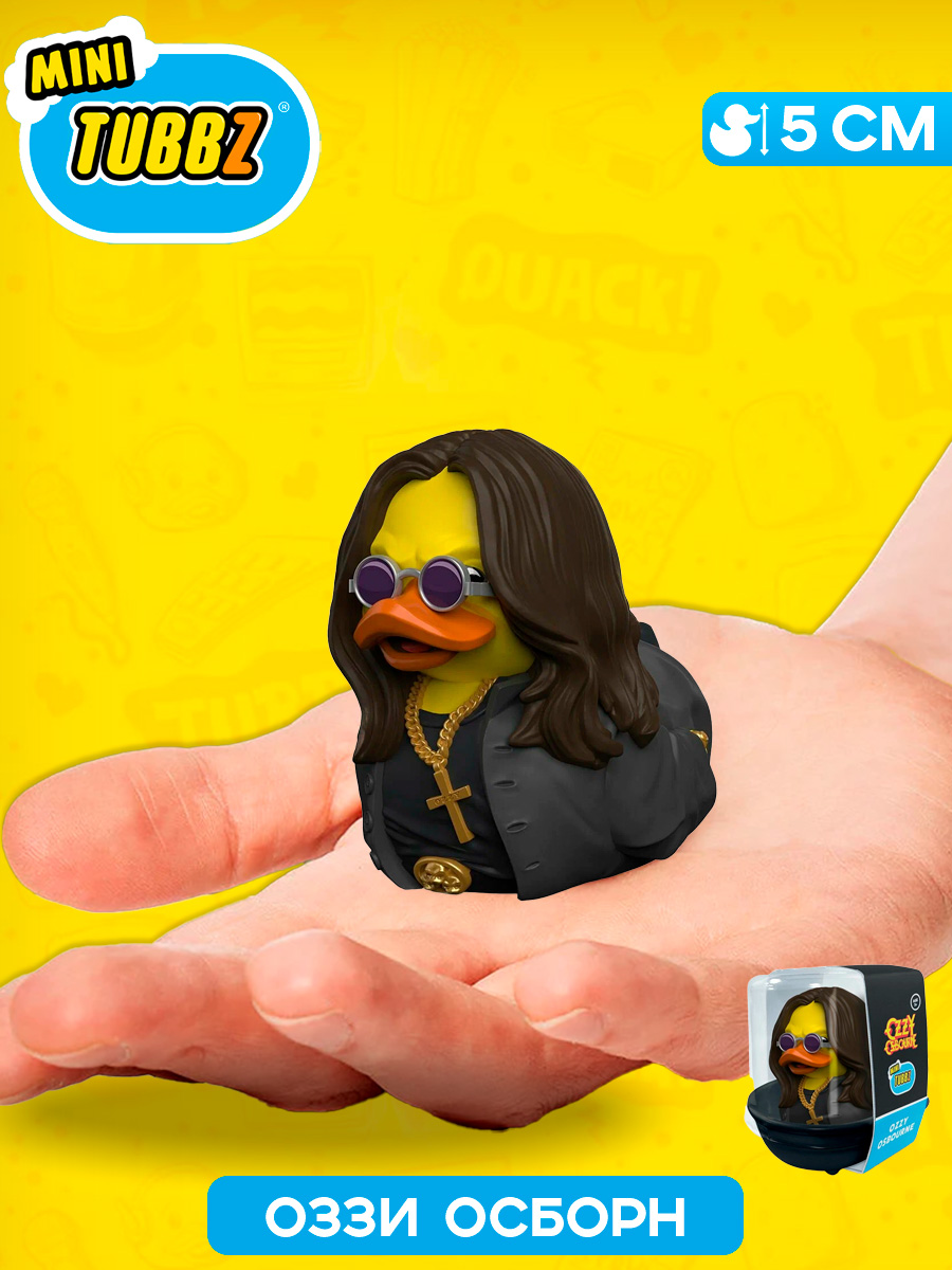 Оззи Осборн – официальная коллекционная утка серии Mini TUBBZ по Ozzy Osbourne Официальный товар по Ozzy Osbourne Разработано и спроектировано Designs Фигурка серии Mini TUBBZ Коллекционный предмет премиального качества – фигурка изготовлена из высококачественного пластика с вниманием к каждой детали В комплекте миниатюрная ванночка с логотипом Ozzy Osbourne Mini TUBBZ – на 50% меньше стандартного размера утки TUBBZ Оззи Осборн возвращается в качестве коллекционной утки, но на этот раз – Mini TUBBZ. Недостаток размера он компенсирует великолепием сценического образа! В TUBBZ все ваши любимые персонажи игр, фильмов, сериалов и массовой культуры представлены в виде уток! Внимание – фигурка не является игрушкой для ванны.