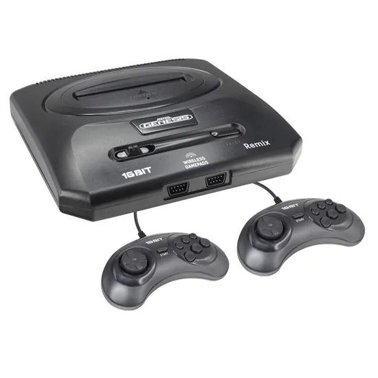 Игровая приставка Retro Genesis Remix с поддержкой сразу двух платформ – 8 и 16 бит – позволяет играть в игры типа NES (Famicom/Dendy) и Sega. Встроенные 600 игр, из которых 300 игр 8 бит и 300 игр 16 бит, предлагают широкий спектр развлечений, в числе которых увлекательные игры про Марио, Танчики и Соника. Приставка оснащается классическим AV-разъемом. В комплект с приставкой идут два проводных джойстика в привычной форме геймпадов Sega с шестью кнопками действия.