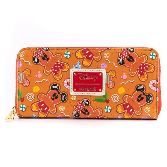 Кошелек Loungefly Disney Ginger Bread AOP Zip Around Wallet WDWA1782 в стиле пряничного человечка с мышками Минни и Микки.