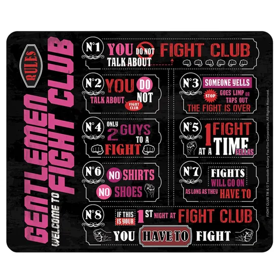 Коврик для мыши Fight Club Mousepad Fight Club Rules* ABYACC307 выполнен по мотивам фильма "Бойцовский клуб".