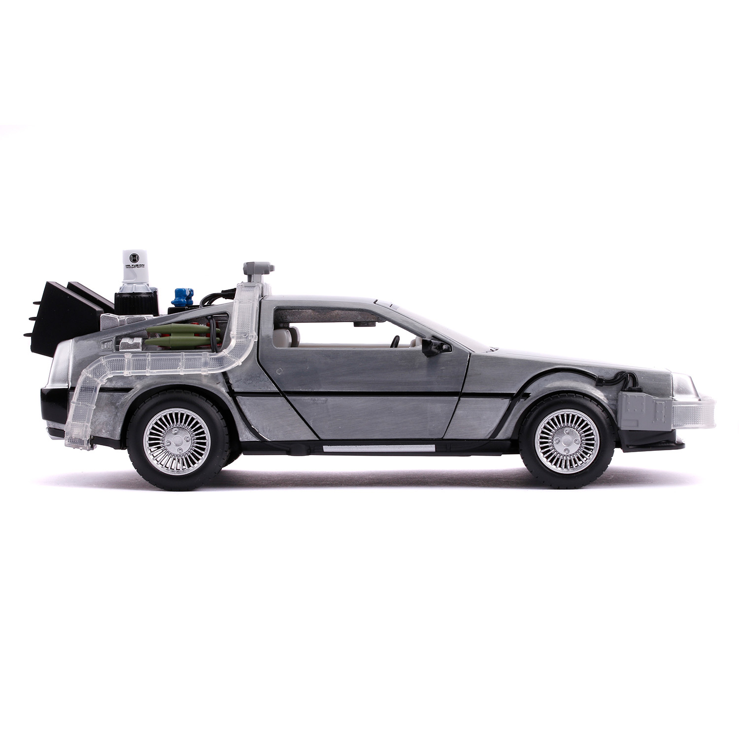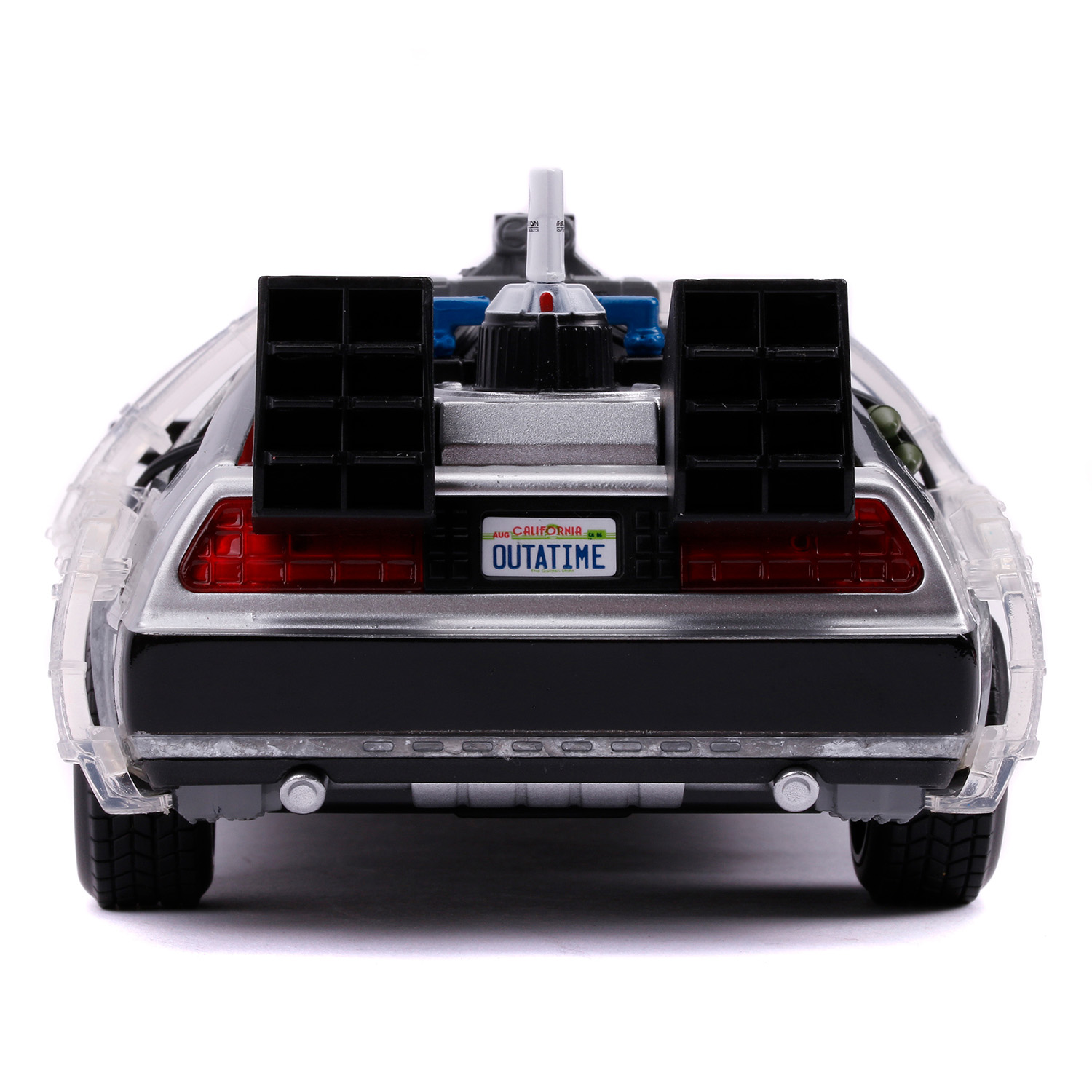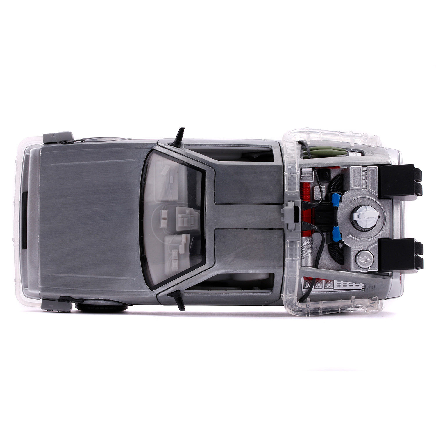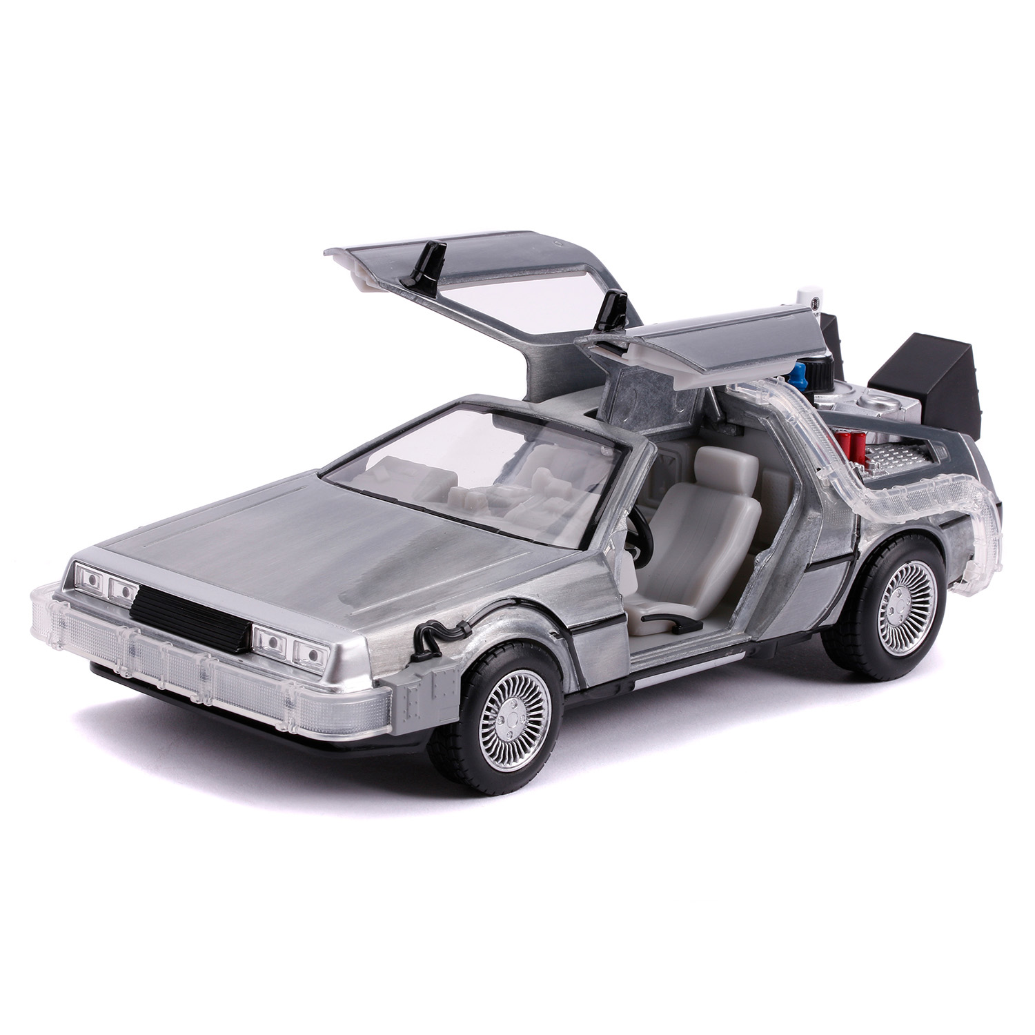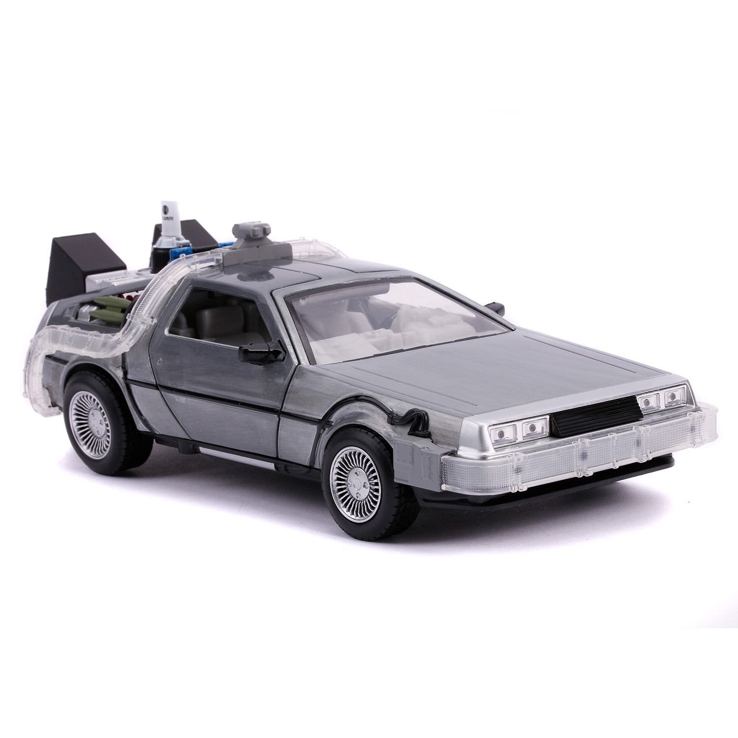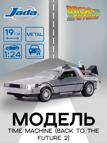 Модель Машинки Hollywood Rides Back to the Future 2 1:24 Time Machine Primer Brushed Raw Metal 31468 по мотивам франшизы "Назад в будущее".