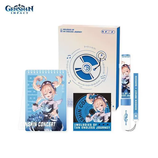 Набор Блокнот, Закладка в виде компакт-диска, Фонарик 2022 Online ConcertBarbara 6975628241811 по мотивам компьютерной игры "Genshin Impact".