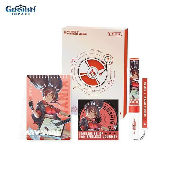 Набор Блокнот, Закладка в виде компакт-диска, Фонарик 2022 Online ConcertXinyan 6975628241828 по мотивам компьютерной игры "Genshin Impact".