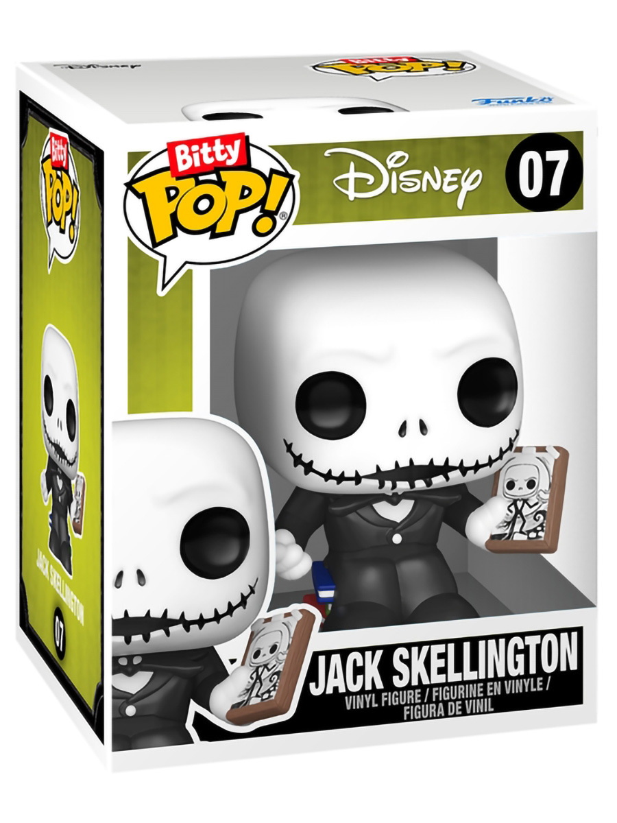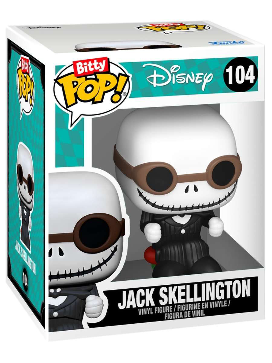 - В упаковке: Bitty POP! Зеро, Bitty POP! Салли, Bitty POP! Джек Скеллингтон (2 шт.), Bitty POP! Снегоход и Bitty POP! Дом Джека.