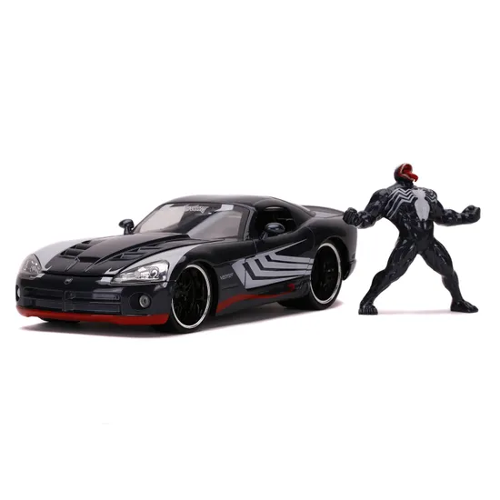Набор Hollywood Rides Машинка с Фигуркой 2.75" 1:24 2008 Dodge Viper SRT10 W/Venom Figure (Marvel) 3 включает в себя фигурку Венома и модель машины Dodge Viper SRT10. Веном — персонаж, появляющийся в комиксах издательства Marvel Comics, обычно связанных с Человеком-пауком. Изначально выступавший в качестве суперзлодея, персонаж со временем приобрёл статус антигероя. Веном — это чёрный инопланетный (в некоторых версиях может быть искусственным) симбиот, разумное инопланетное существо липкой, практически жидкой формы. Подобно реальным симбиотам, для того, чтобы выжить, он нуждается в носителе, как правило, человеке. Единение с симбиотом предоставляет его владельцу сверхчеловеческие возможности. Слияние симбиота с человеком порождает сущность, известную как «Веном». Первым известным владельцем симбиота был Человек-Паук, который в конечном итоге отказался от пришельца, узнав о его истинных злых намерениях. Впоследствии симбиот объединялся с другими носителями, в частности с Эдди Броком, его вторым и самым известным хозяином, ставшим первым Веномом и заклятым врагом Человека-Паука. Согласно источникам Щ.И.Т.а, он является одной из величайших угроз человечеству, наряду с Магнето, Доктором Думом и Красным Черепом.