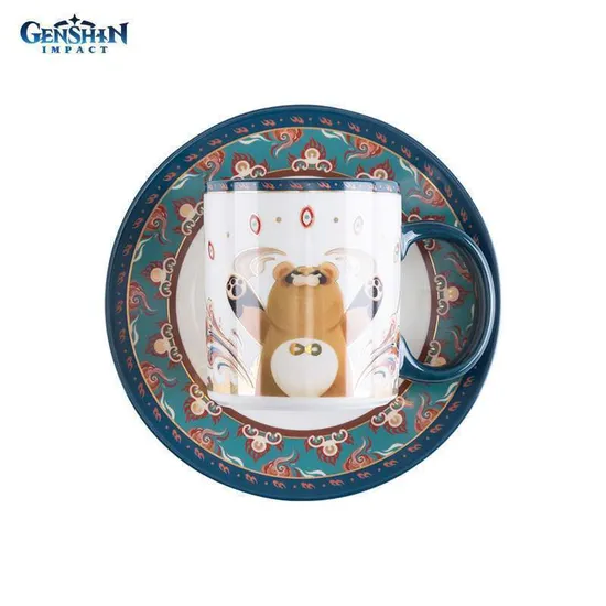 Набор из 3 предметов, кружка, блюдце, декоративный коврик "Flavours of the World" Guoba 6974696618051 по мотивам компьютерной игры "Genshin Impact".