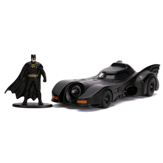 Набор Jada Toys Модель Машинки Batmobile 1:32 1989 Batmobile W/Batman Figure 31704 включает в себя фигурку супергероя вселенной DC и его автомобиль. Бэтмен, изначально Бэт-мен — супергерой, персонаж комиксов издательства DC Comics, впервые появившийся в Detective Comics № 27 30 марта 1939 года, Бэтмен является одним из самых популярных и известных героев комиксов. Бэтмобиль — вымышленный автомобиль Бэтмена, для съёмок художественных фильмов про Бэтмена изготавливаются или существенно модифицируются реальные автомобили.