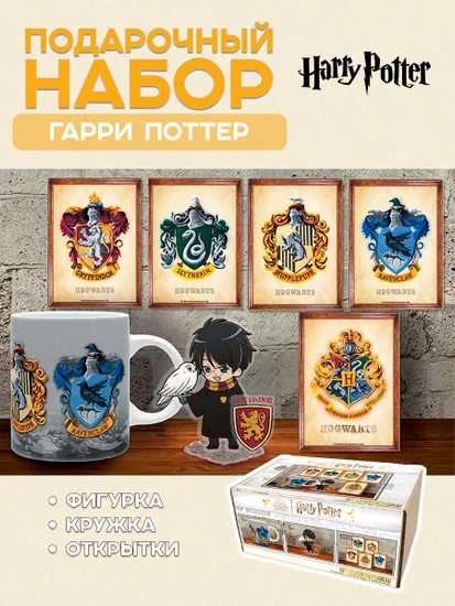 Набор подарочный Harry Potter Hogwarts Кружка 320мл+Акриловая фигурка+Открытки ABYPCK281 по мотивам вселенной "Гарри Поттер".
